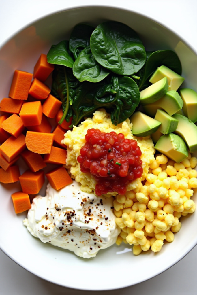 This recipe yields 1 generous serving (easily multiplied for family meal prep). Packed with about 28g protein, 10g fiber, and a blend of healthy fats, this bowl is engineered to keep you energized and full all morning long.
